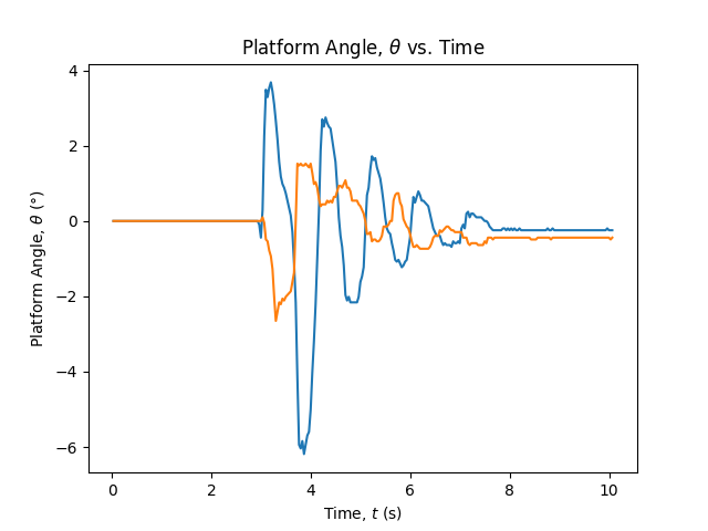 Due to time constraints I elected to not use the IMU. While it may have provided more accurate measurements of the platform angle, the system has fair stability reading from the encoders. One major benefit of using the IMU that I was unable to account for is having to level the platform each time before running the controller. I was forced to implement a calibration phase where the user levels the platform manually to start before placing the ball on it.